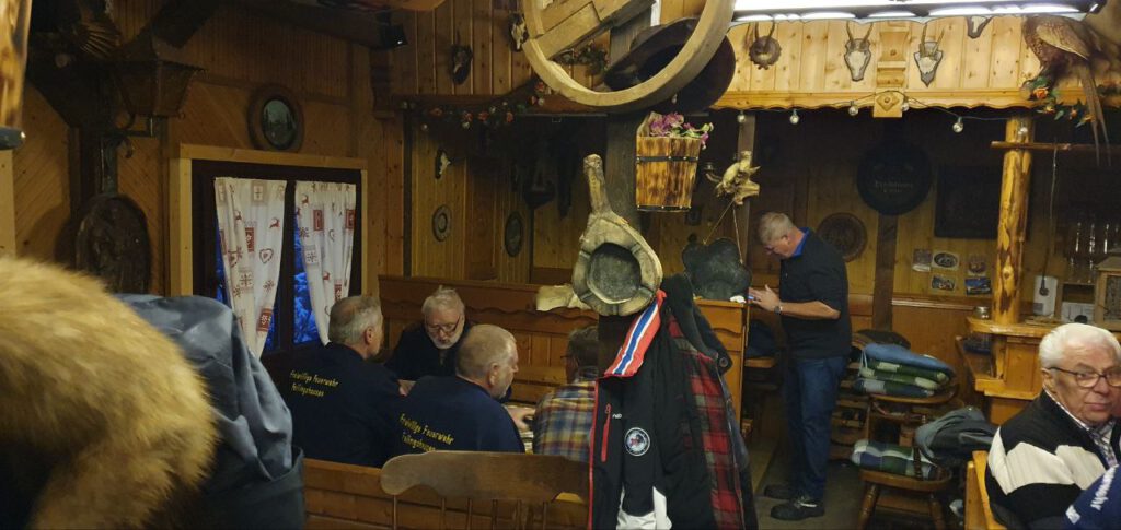 Am Ende hatten wir 16 km Fußmarsch absolviert; … eine letzte Rast vor dem Lokal, dann ging es in eine urige Hütte, in der der Abend fröhlich ausklang.
