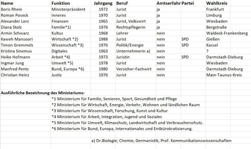 Für Juristen spricht, dass sie sich schnell in neue Sachverhalte einarbeiten müssen und meistens auch können. Außerdem haben sie die Fachleute ja im Ministerium. Aber können sie deren Kenntnisse und Fähigkeiten immer beurteilen? Handwerker fehlen hier. Der normale Mittelstandshandwerker kann auch nicht einfach mehrere Jahre seinen Betrieb verlassen. Landwirte haben nur im Winter Zeit – siehe die jetzigen Demonstrationen. Wo bleiben die Arbeiter? Die Betriebe müssen sie ohne irgendwelche Einbußen frei stellen – siehe $$ 2-4 des Hessischen Abgeordnetengesetzes. Nur drei Frauen? Das geht doch besser.