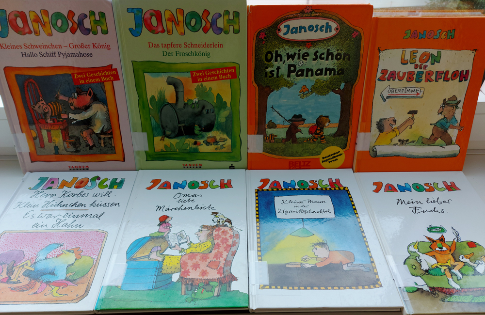 Am besten nehmen Sie Ihre großen oder kleinen Kinder mit, denn die Bücherei hat alleine von Janosch 45 Bücher.. außerdem fühlen sich die inzwischen großen „Kinder“ dem kleinen Bär und dem kleinen Tiger noch immer verbunden…