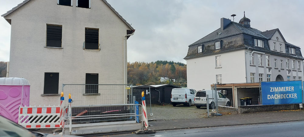 Nur beim alten Haus neben der neuen Orthopädie-Schuhmacher-Werkstatt tut sich gar nichts.