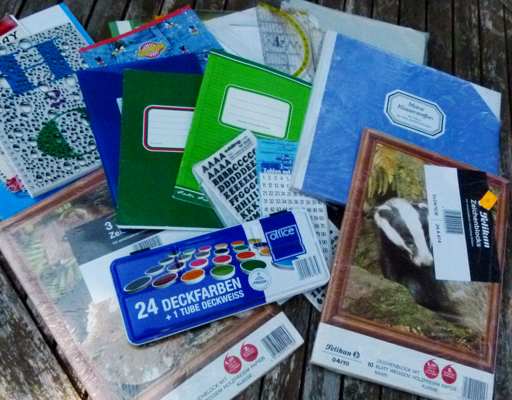 Eigentlich wollte ich die abgebildeten Schulsachen zu GAIN nach Gießen bringen. aber lieber ist es mir, sie im Ort abzugeben. Die katholische Kirche St Anna sammelt gemeinsam mit der Caritas seit Jahren Schulsachen für Menschen, für die solche Dinge eine große finanzielle Belastung darstellen. In vielen Haushalten liegen sie dagegen doppelt und dreifach herum – nachdem die Kinder groß geworden sind. Für die Tonne viel zu schade.