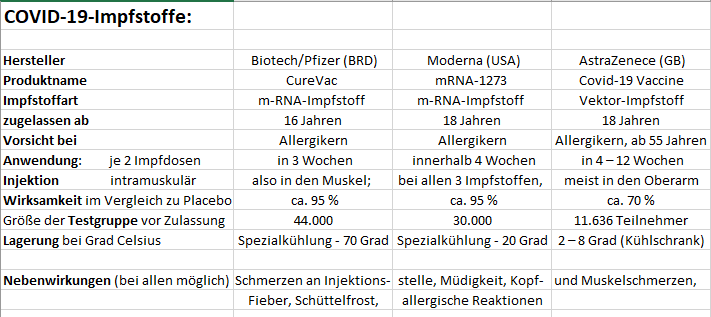 Quelle: Biontech, Moderna, AstraZeneca, US Food & Drug Administration – dpa 101879