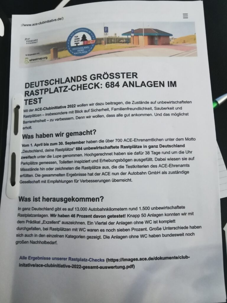 Pünktlich zur Jahreshauptversammlung ist auch das Ergebnis des Clubaktion Rastplätze eingetroffen.