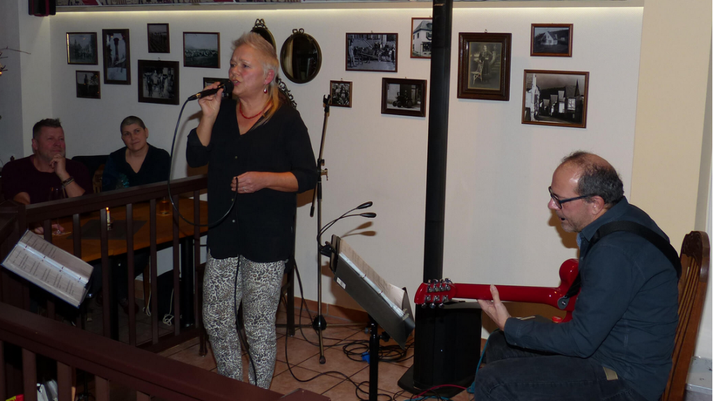 Sigrun Bepler und Burkhard Mayer boten am 07. Dezember 2019 in adventlichem Ambiente im Gästehaus „Am Kirchlein“ in Krumbach ein jazzig-souliges Konzert, begeisterten ihre knapp 30 Zuhörer.