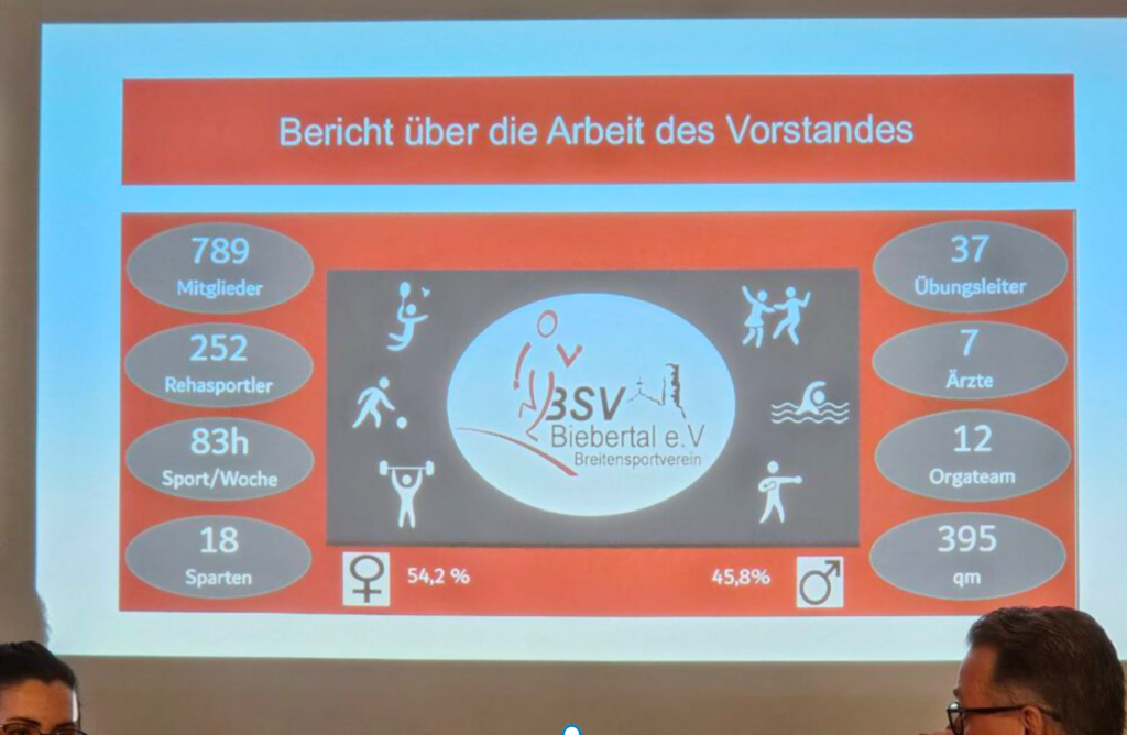 Am Dienstag, den 16. 4. 2024 fand in den Räumen des Breitensportvereins in Biebertal, in der Industriestr. 6, die Jahreshauptversammlung statt. Unter anderem wurden, neben den üblichen Themen einer Jahreshauptversammlung, die beeindruckenden Zahlen zu Aktivitäten und Verein, zu geplanten Investitionen vorgestellt, der Vorstand entlastet und langjährige Mitglieder geehrt: