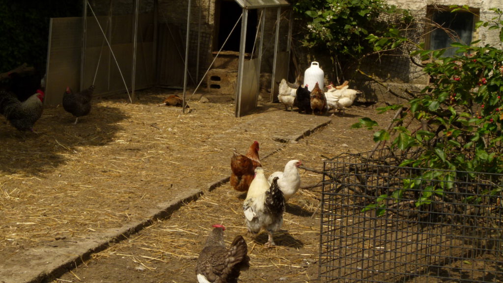 Auslauf zum Scharren, Schatten, Trinken im Gnadenhof