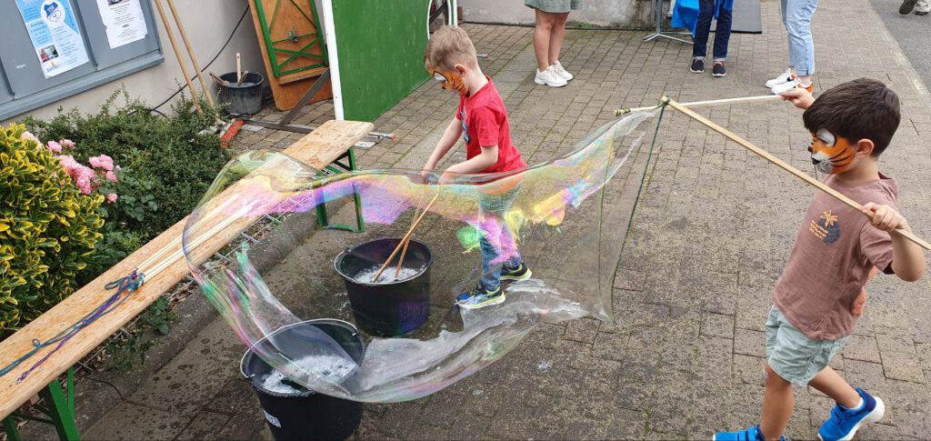So hatten die im Edeka-Zelt bald geschminkten Kinder, wie auch Erwachsene, Spaß mit Riesen-Seifenblasen.
