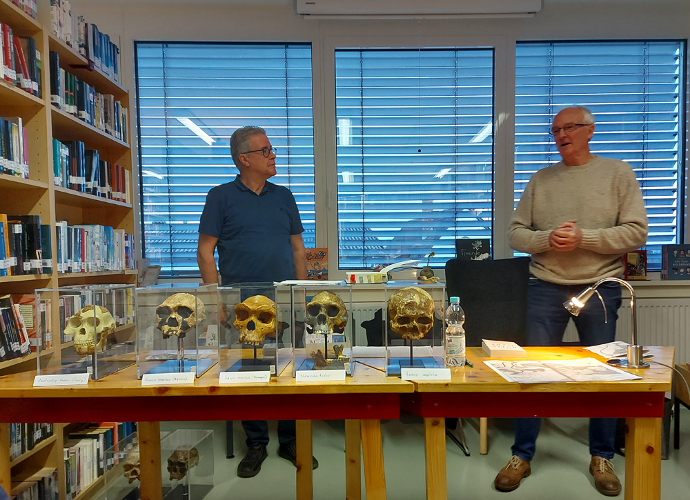 Wenn eine Lesung von Professor Ziemeck aus Frankenbach angekündigt wird, zieht es recht viele Leute in die Bücherei. Dieses Mal kamen sogar drei Herren aus Fellingshausen, die man normalerweise nicht dort antrifft. Hans Peter Ziemeck las allerdings nicht aus einer eigenen Veröffentlichung, sondern aus dem Buch des Archäogenetikers Johannes Krause, Professor an der Universität Tübingen „Die Reise unserer Gene – Eine Geschichte über uns und unsere Vorfahren“.