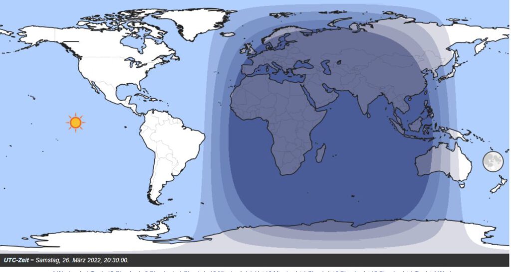 Um 21.00 Uhr herrscht die Nacht über Europa, Afrika und weite Teile Asiens