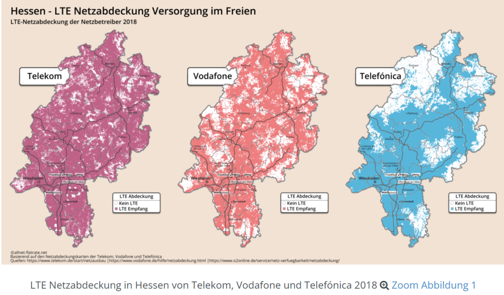 So erklären sich die regelmäßigen Ausfälle beim Netzempfang, wenn man mit Auto oder Zug unterwegs ist und man derartige Funklöcher durchfährt. Derartige weiße Flecken sind in der Netzabdeckungslandkarte des Bundesministeriums für Verkehr und digitale Struktur nicht ersichtlich.