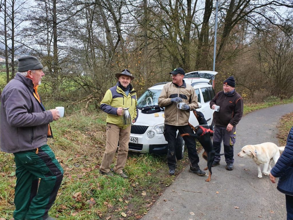 Pause nach dem Obstbäume pflanzen auf der Wiese oberhalb des Bornweges.