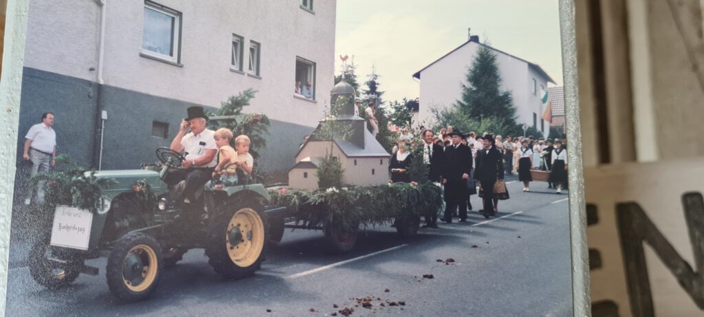 Im August 1986 feierten die Frankenbacher an 3 Festtagen die erstmalige urkundliche Erwähnung ihres Dorfes vor 700 Jahren. Höhepunkt der Veranstaltung war der Festzug am Sonntag. Über 40 Wagen und Fußgruppen zogen durch das Dorf und fanden viel Beifall. Mit dabei war ein Wagen, auf dem ein stattliches Modell der Frankenbacher Kirche gezeigt wurde. Dieses hatten Willi Gerth und Otto Rüspeler in wochenlanger Arbeit maßstabsgetreu angefertigt. Die Frankenbacher Kirche ist ein kunsthistorisches Denkmal allererster Güte. Erste Bauabschnitte gehen bis auf das 11. Jahrhundert zurück. Darüber hinaus zeigt sie auch heute noch schöne, restaurierte Wandmalereien aus dem 15. Jahrhundert. Drei Glocken aus dem 16. bis 18., Jahrhundert bilden das Geläut.