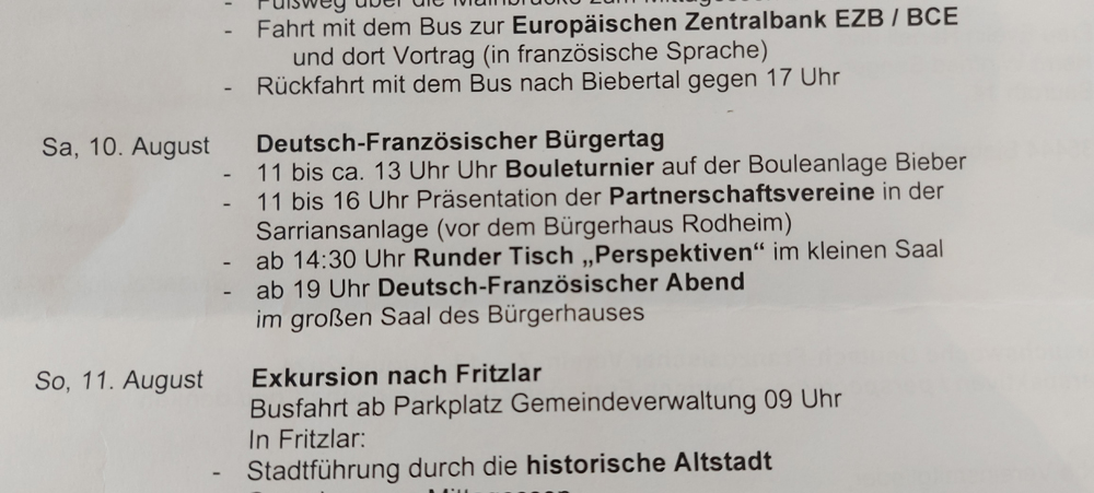 Auch ich als Mitglied des Deutsch-Französischen Vereins hätte von der Veranstaltung wissen können. Schließlich stand die Ankündigung in der Einladung zur Besuchswoche des Deutsch-Französischen Vereins.