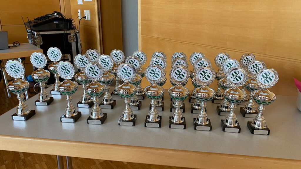 Zahlreiche Pokale konnten am vergangenen Samstag im Bürgerhaus Rodheim übergeben werden. Dort richtet als einer der ersten Vereine die SpVgg-1951-Frankenbach wieder ein Rock´n Roll Turnier nach 2 jähriger Corona Pause aus. Bereits im September 2019 konnte Diana Haas, die Trainerin und Spartenleiterin der Rock´n Roll-Abteilung, den Vorstand von der Ausführung eines eigenen Turniers überzeugen. 18 Paare in 4 Altersklassen und 3 Formationen zeigten dann ihr Können und begeisterten so das Publikum. Für das leibliche Wohl war ebenso bestens gesorgt. Neben Bockwurst und Salaten gab es auch zahlreiche Kuchen und allerhand Kaltgetränke. Danke gilt es hier allen Helferinnen und Helfern zu sagen.