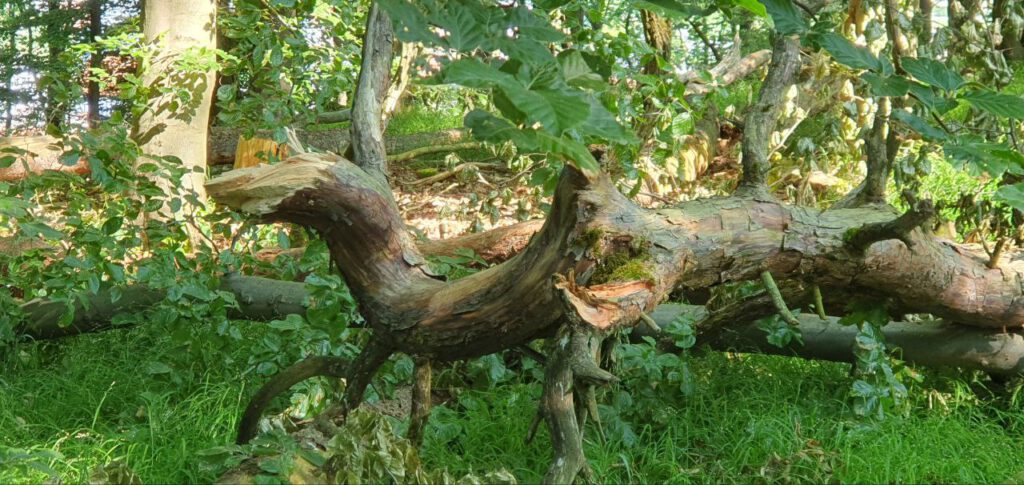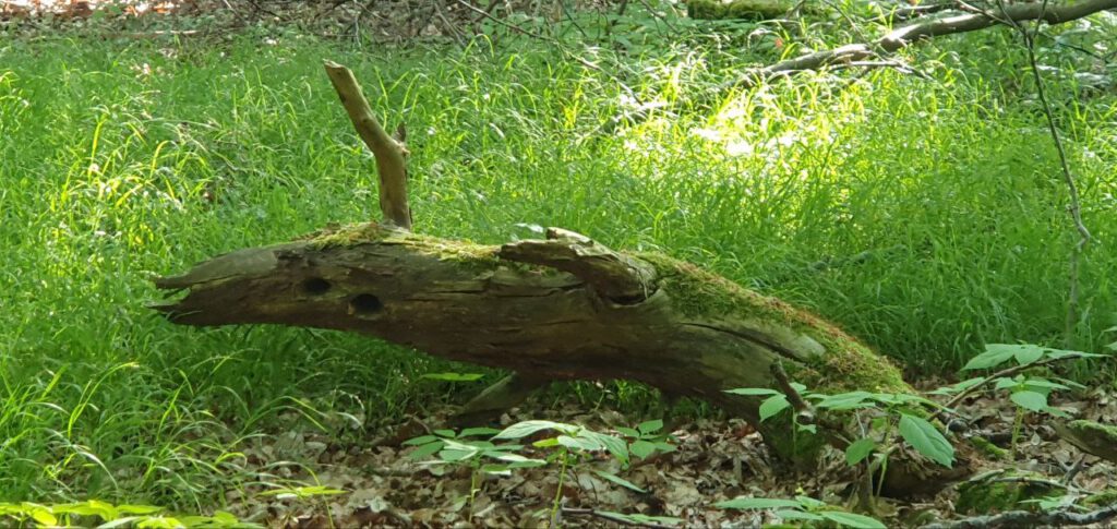 Kürzlich umrundete ich „Die Welz“ und fand folgende Skulpturen: „Urzeitmonster“, einen springenden „Waal“, ein „Geweih“, aber auch echte und falsche Blindschleichen.