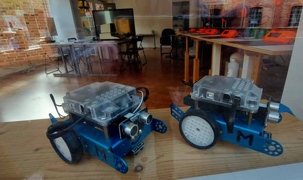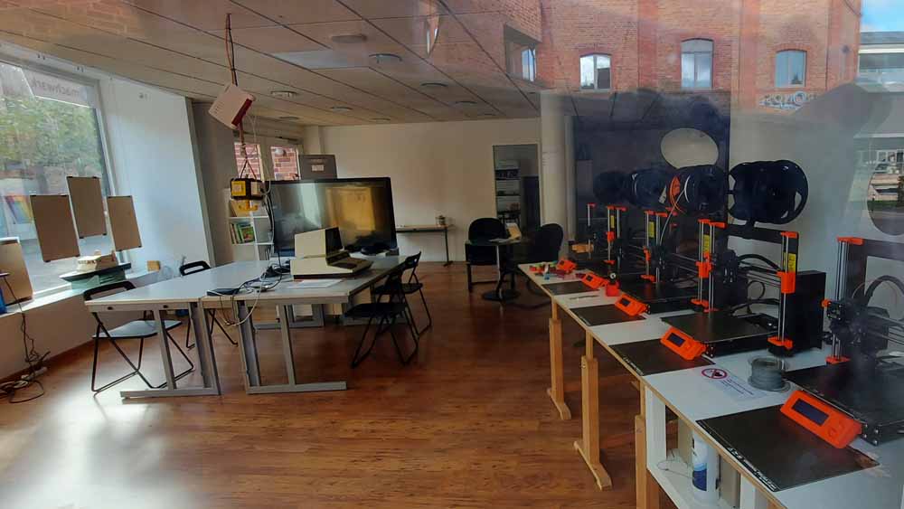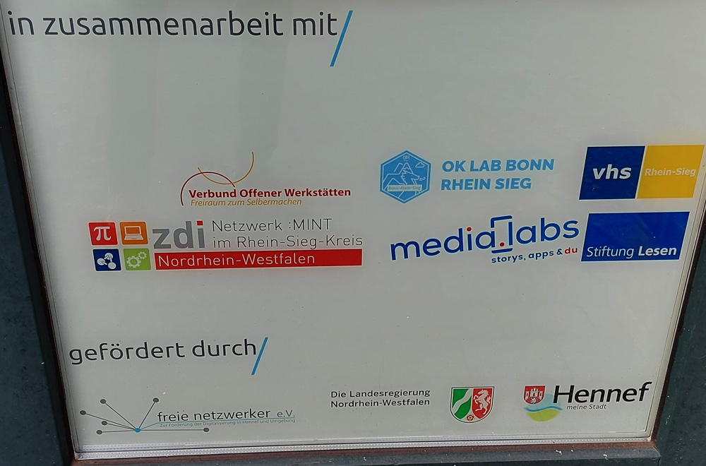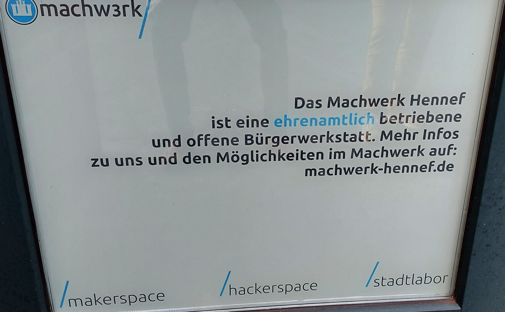 Auf dem kurzen Spaziergang kamen wir an einem Ladenlokal vorbei, bei dem Winfried das Herz aufging. Dort hat das MACHWERK seinen Sitz. Es ist zugleich Reparaturwerkstatt, Makerspace,/Hackerspace/ Stadtlabor.