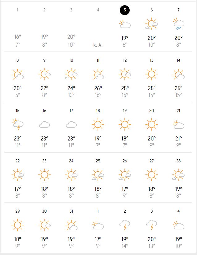 Wie es wirklich wird, werden wir ja meist erst kurz vorher wissen. Alle langfristigen Vorhersagen sind natürlich sehr wage. Und vielleicht wird es den ein oder anderen freuen, dass einige vom Hallenbad ins Freibad wechseln.