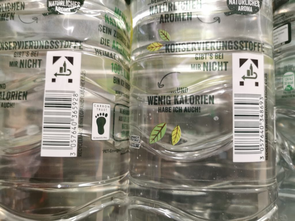 Ok ich gebe es zu. Der rechte Apfel ist gelber, die Schrift hat ne andere Farbe und es gibt unterschiedliche Aufdrucke. Aber darum geht es mir gar nicht. Der Inhalt ist der gleiche – nämlich stilles Wasser mit Apfelgeschmack. Und beide Flaschen beinhalten 1,5 l. Allerdings kostet die rechte Flasche 1,39 € und die linke 0,89 €. Ja jetzt guck ihr und könnt es gar nicht glauben. Es ist auch nicht der 1.4. oder ich will euch sonst wie aufs Korn nehmen.