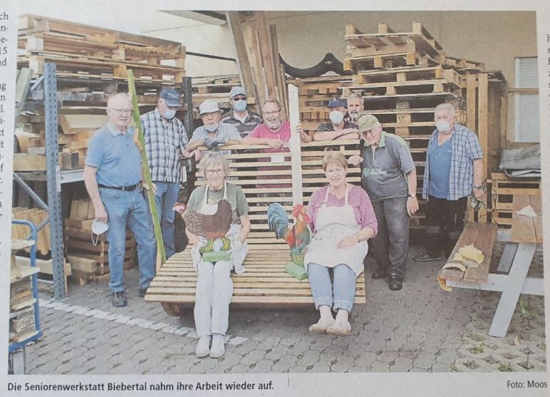 Ziel der Seniorenwerkstatt war und ist es, älteren Menschen die Möglichkeit zur Anwendung ihrer im Berufsalltag wie in der Freizeit erworbenen Fähigkeiten zu geben; sie in praktischen Nutzen für die Mitmenschen umzusetzen. Zudem besteht hier die Chance Kontakte zu knüpfen, gesellig beisammen zu sein und zusammen zu arbeiten, etwas zu schaffen, Kommunikation und Freude miteinander zu haben. Dazu ist die Initiative seit 2015 aktiv. Überwiegend wird mit Holz gearbeitet, 160 Bänke werden gewartet, Schautafeln erstellt, Schwalbenhäuschen wie Märchenfiguren gebaut oder kleinere Reparaturen durchgeführt. Die Seniorenwerkstatt ist grundsätzlich für alle Menschen offen und neue Mitstreiter sind willkommen.