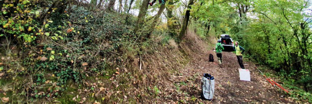 Auf dem – in der Karte mit einem dicken schwarzen Strich markierten – Weg zwischen Fellingshausen und Rodheim wurden am Sa. 17. Okt. 2020 die Sicherungsarbeiten am Weg durchgeführt.