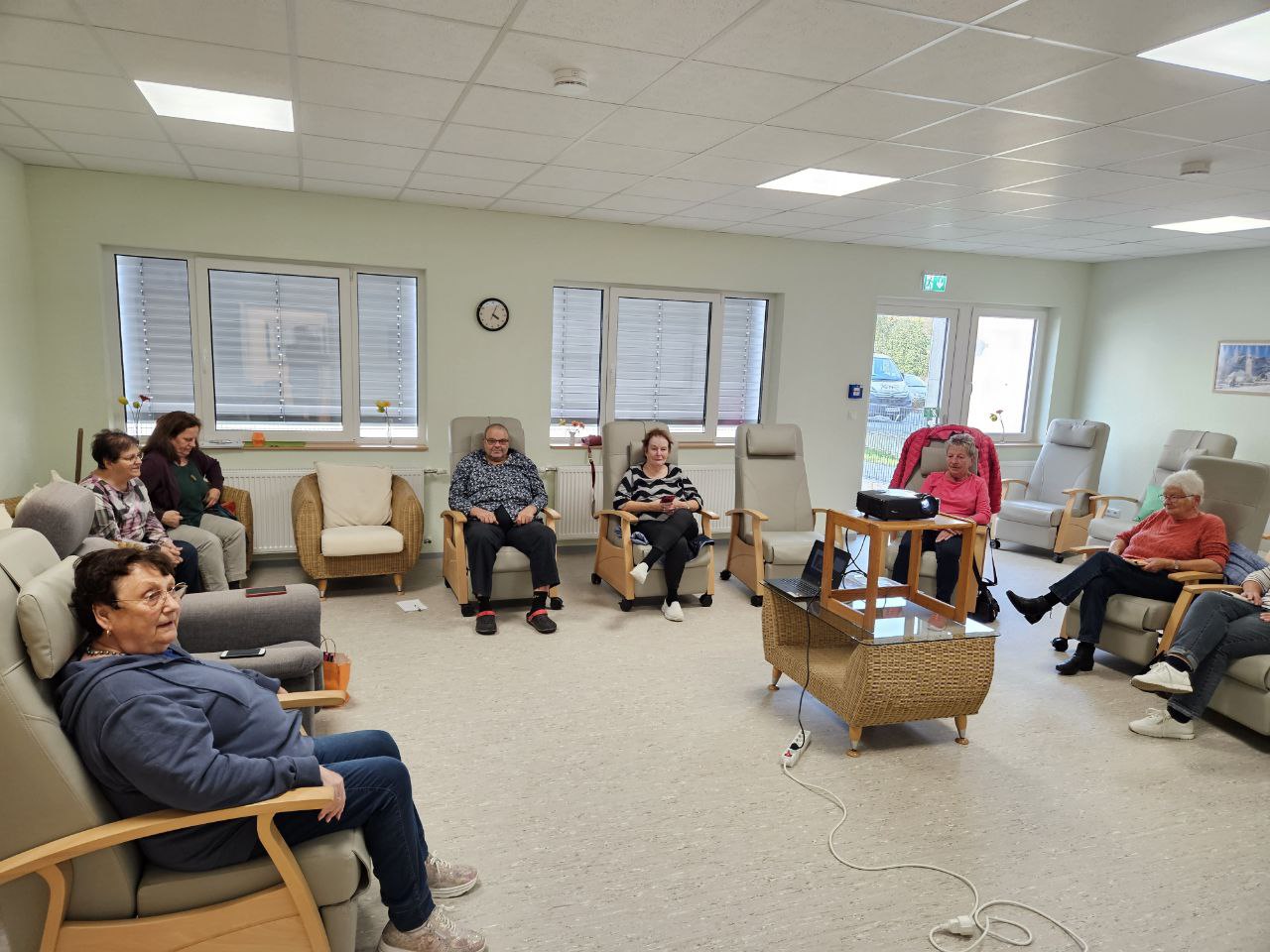 In einem Raum der Tagespflege Biebertal – hinter dem Feuerwehrgerätehaus in Fellingshausen – konnte der Kurs abgehalten werden – in den bequemen Sesseln, die sonst von den Besuchern der Tagespflege in der Mittagsruhe genutzt werden.
