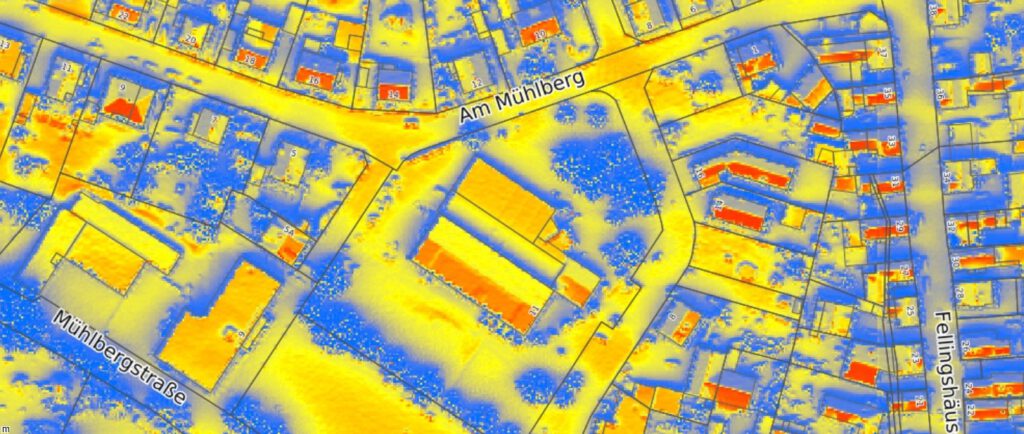 Überall da wo die Dachflächen rot aufscheinen, lohnt eine Fotovoltaikanlage besonders, aber auch im gelben Bereich ist die Ausbeute an Solarstrom recht gut, so dass die Anlagen wirtschaftlich arbeiten. Den Rat einer Fachfirma lohnt sich auf alle Fälle einzuholen. Auch die Stromspeicher sind inzwischen so ausgereift, dass viele Verbrauchsstellen im eigenen Haushalt damit gut bedient werden können; d.h. die Stromkosten ermäßigen sich. Aktuell amortisieren sich die Investitionskosten mit den Einsparungen recht rasch.
