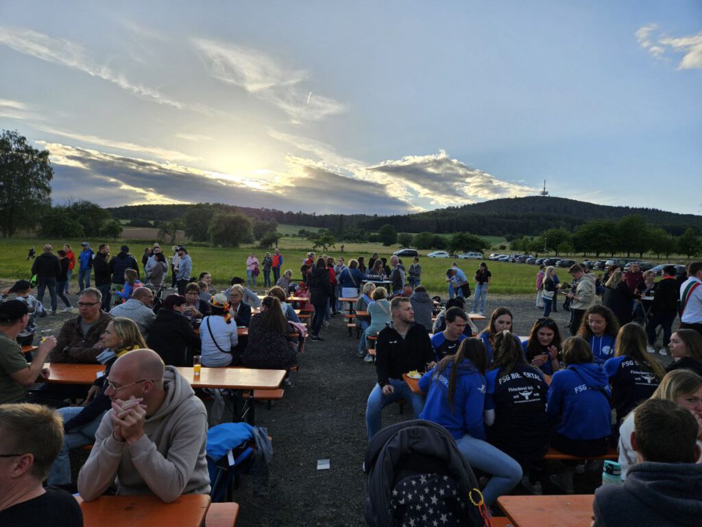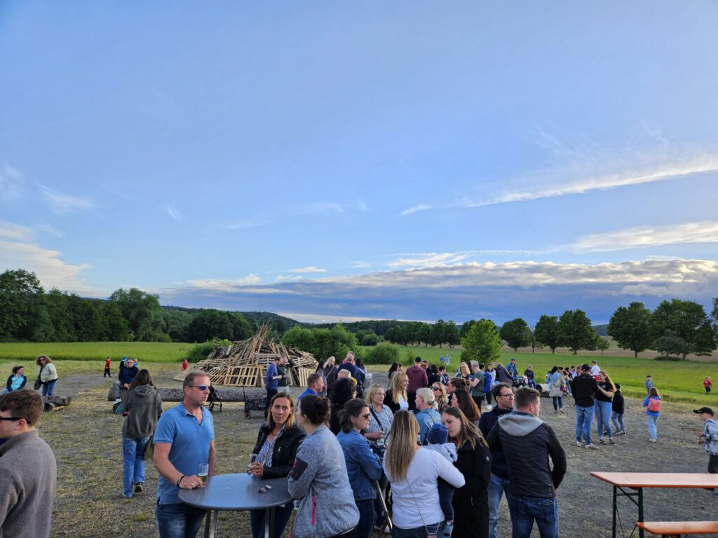 Auch wenn ich mit einer Aufnahme vom diesjährigen Sonnwendfeuer beginne, ist es mir wichtig, – auf unserer Fellingshausen-Seite zu sehen – diesmal einen ganz anderen Blick auf den von den jungen Füchsen in Fellingshausen organisierten Umzug durch unser Dorf zeigen. Denn begeisterte Zuschauer säumten den Weg.