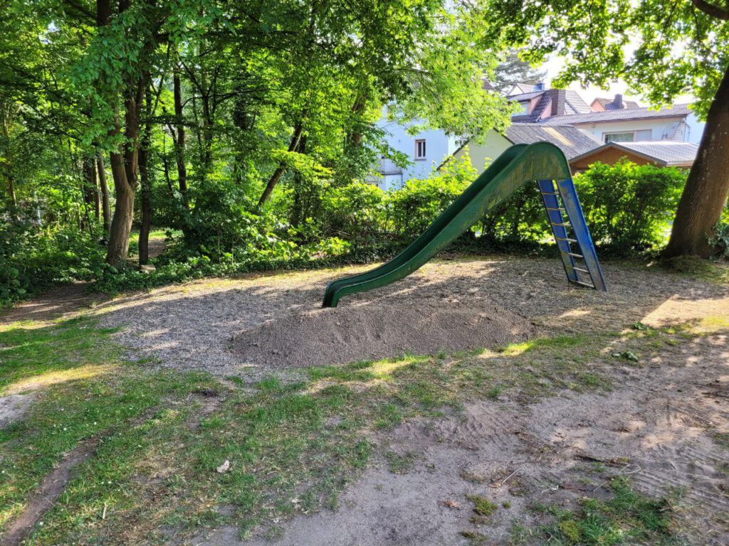 Wir im Bilderbogen, (ich) habe ja schon das eine oder andere Mal über den Spielplatz am Wäldchen berichtet. Insbesondere, dass sich dort überhaupt nichts tut. ABER, jetzt wird da gearbeitet. Vielen Dank, liebe Gemeinde. Gut Ding hat Weile.