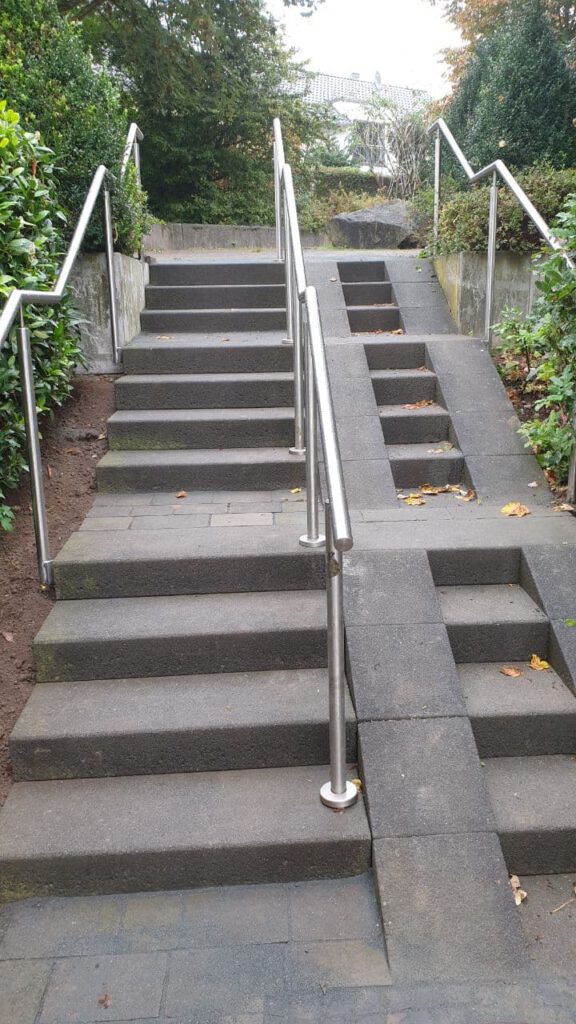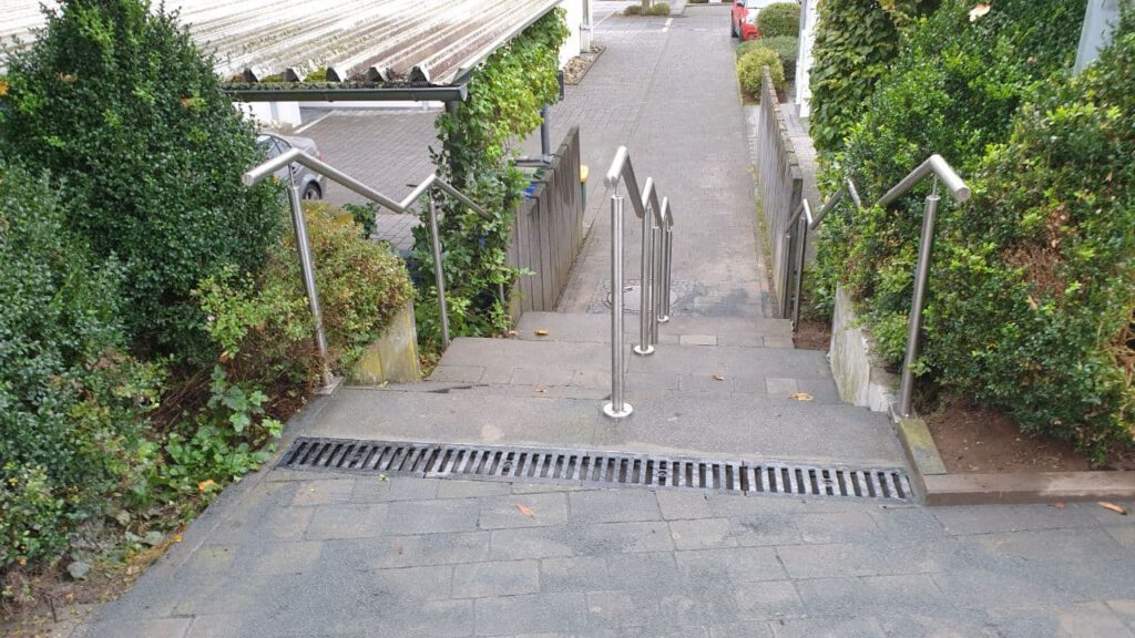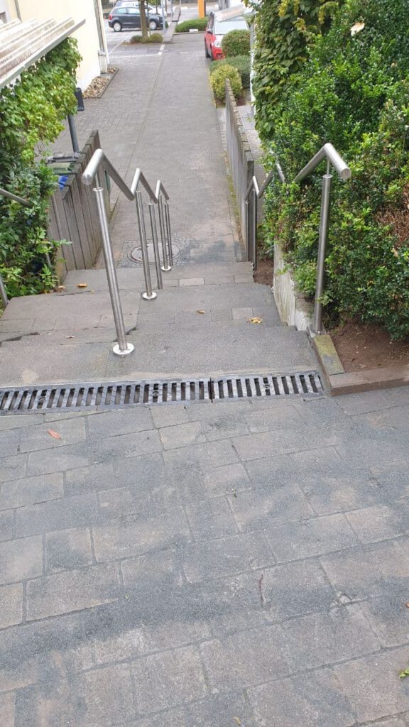 Aber ganz ehrlich, ich sehe jetzt keinen großen Unterschied zu vorher. Ich frage mich immer noch, warum die Treppe neu gemacht wurde. Aber, wie erwähnt. der Auftraggeber hatte seine Gründe. Die Wasserrinne, die ist neu, denke ich. Gut, muß man dafür gleich die Treppe neu machen?