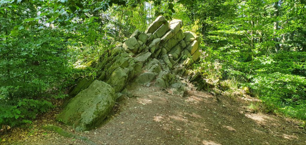 Diese Schautafel findet sich in der Nähe der – offen gesagt sehr schlechten Wegbeschilderung zur Sternschanze – siehe weitere Bilder von deren Überresten im Anschluss, ebenso Bilder vom Königsstuhl und der dort zu findenden Erklärung der geologischen Formation.