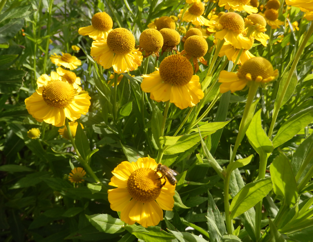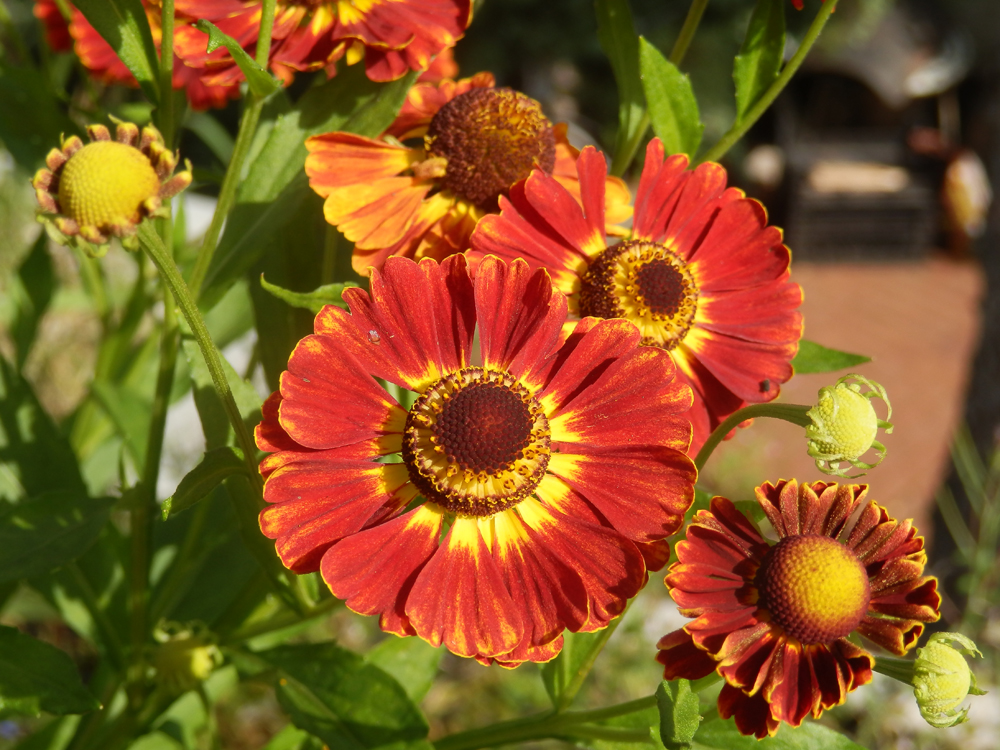 Von manchen Pflanzen müssen wir uns wohl auf Dauer verabschieden. Die Sonnenbräute gehören dazu. Sie lieben zwar die volle Sonne, aber der Untergrund muss feucht sein. In diesem Sommer konnte ich allerdings beobachten, dass es bei der Trockenheitsverträglichkeit auch auf die Sorten ankommt. `Kanaria´ war recht robust, die meisten roten nicht.