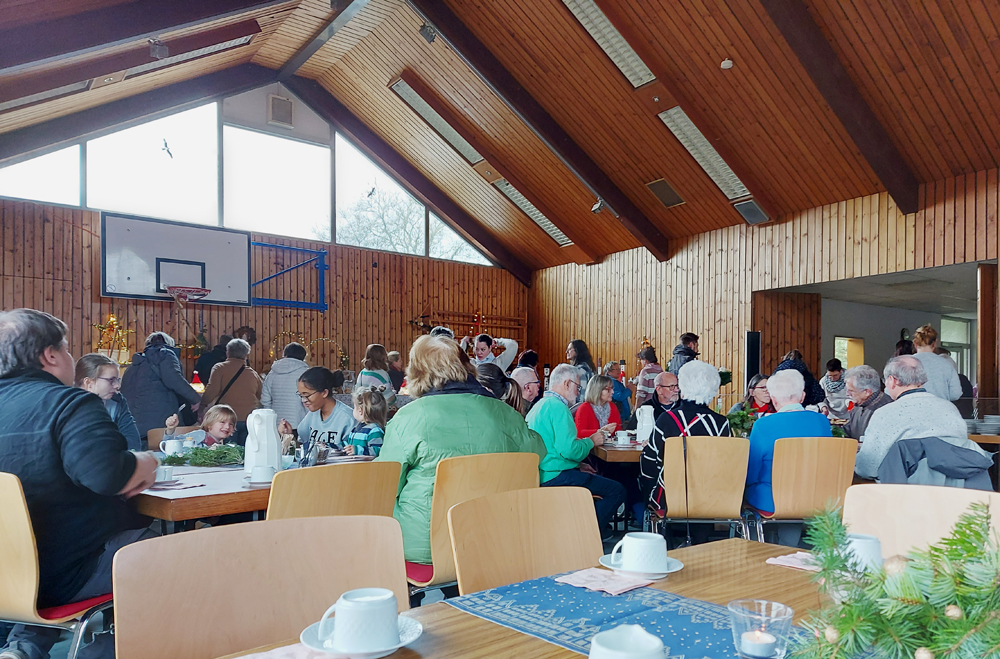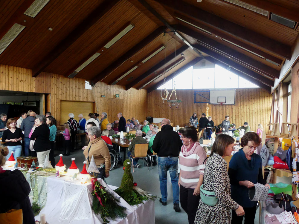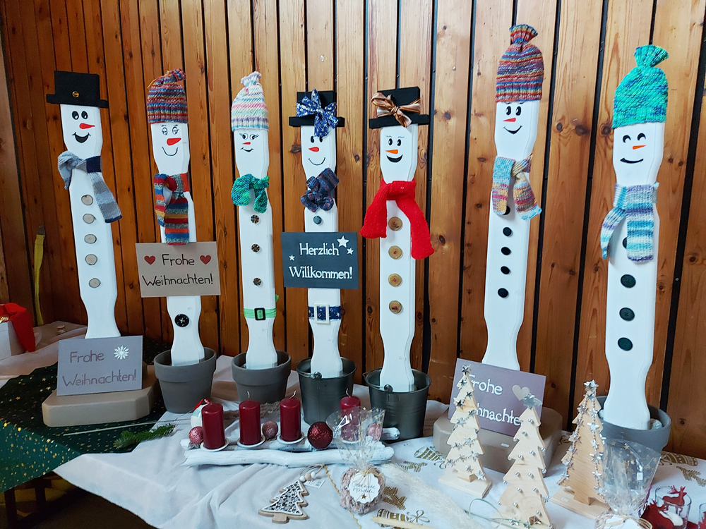 Am 26. November führte der Kultur- und Heimatverein Krumbach ebenfalls nach vier Jahren Corona-Pause wieder einen Weihnachtsbasar durch. Besonders angetan haben es mir diese fröhlichen Latten-Schneemänner. vielleicht eine gute Bastelidee, falls der Schnee für richtige Schneekerle nicht reicht. Aber während ich schreibe, wird es draußen immer weißer. In der Mehrzweckhalle herrschte eine fröhliche Stimmung, wozu die vielen selbst gebackenen Torten und der Kaffee gegen Spende ihren Teil beitrugen. Die Halle war sehr gut besetzt; und die sehr schön gestalteten Adventsgestecke, Sterne, Näh- und Strickwaren wurden gerne gekauft.