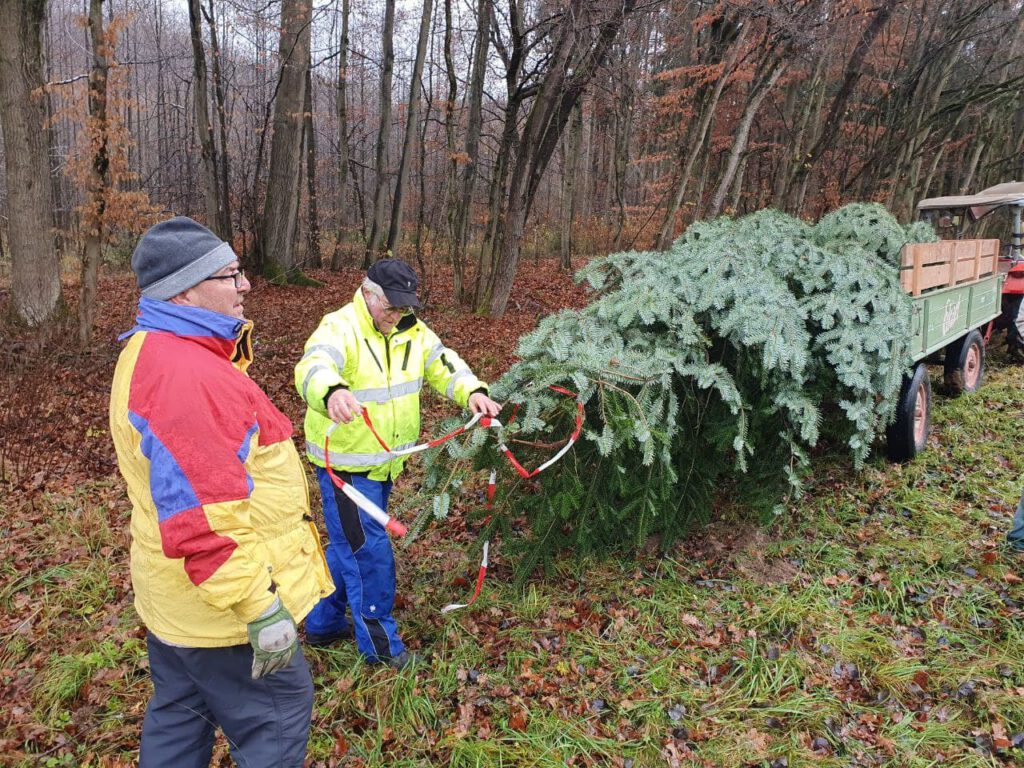Am Samstagmorgen trafen sich um 10 Uhr Männer von der Bürgerkommune und vom Ortsbeirat, um im Wald einen Weihnachtsbaum für Fellingshausen zu holen und am Dorfbrunnen aufzustellen.