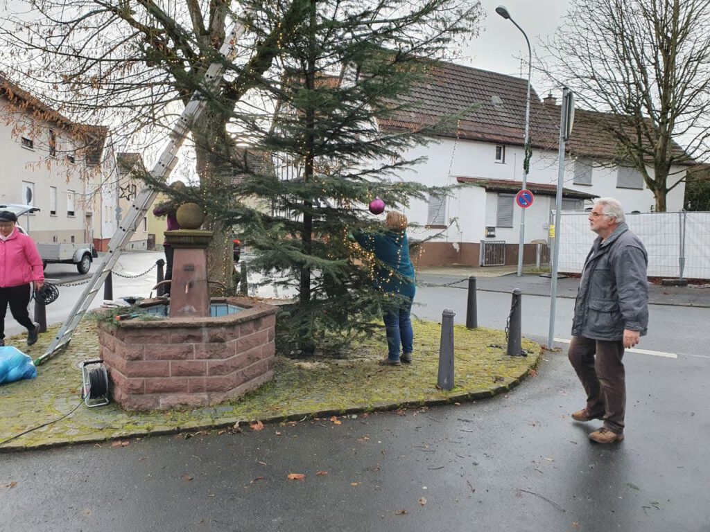 Ab 13.30 Uhr schmückten die Damen vom Gesangverein Concordia mit Unterstützung den Baum mit Licht und Kugeln.
