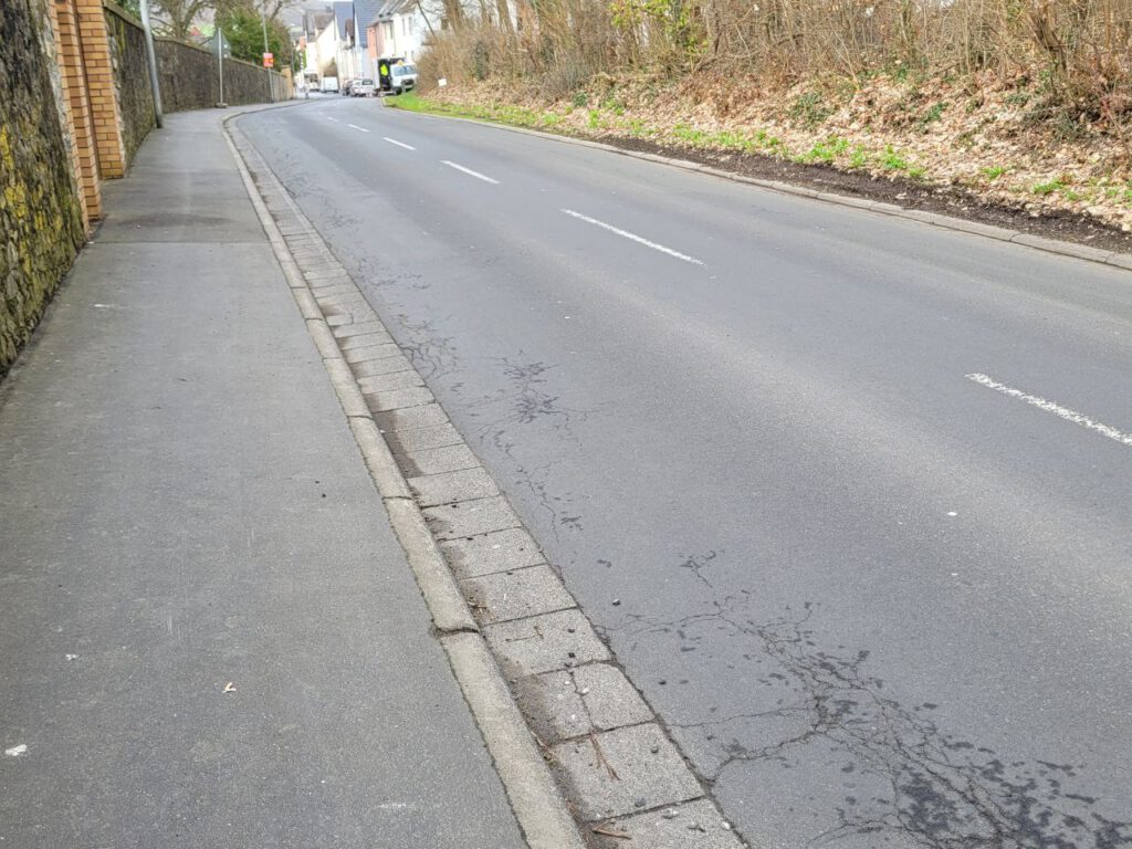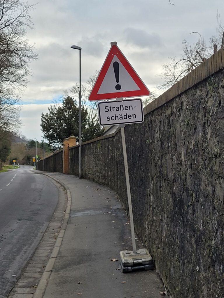 Tja, hier sollte immer noch die ganze Straße am Wäldchen neu gemacht werden. Immer nur „flicken“, weiß nicht, was billiger ist. Neu machen oder andauernd flicken. Diesmal steht auch ein Schild da, mit dem Hinweis: Straßenschäden.