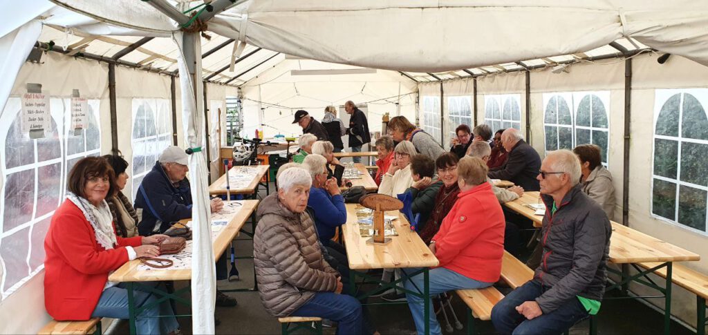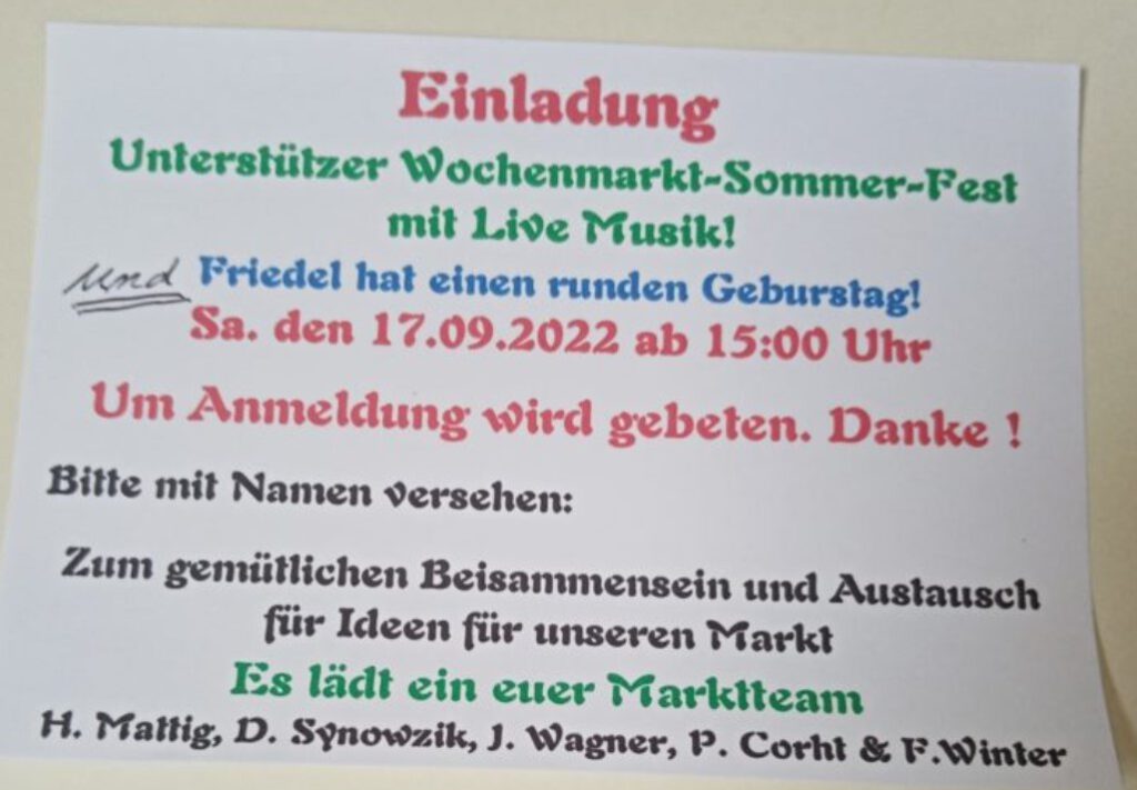 Im Mai war die Feier zum 500. Wochenmarktag in Fellingshausen buchstäblich ins Wasser gefallen. Nun sollte das – zusammen mit Friedel Winter´s 70. Geburtstag nachgefeiert werden. Und wieder zeigte sich, pünktlich um 15 Uhr, sich folgendes Bild:
